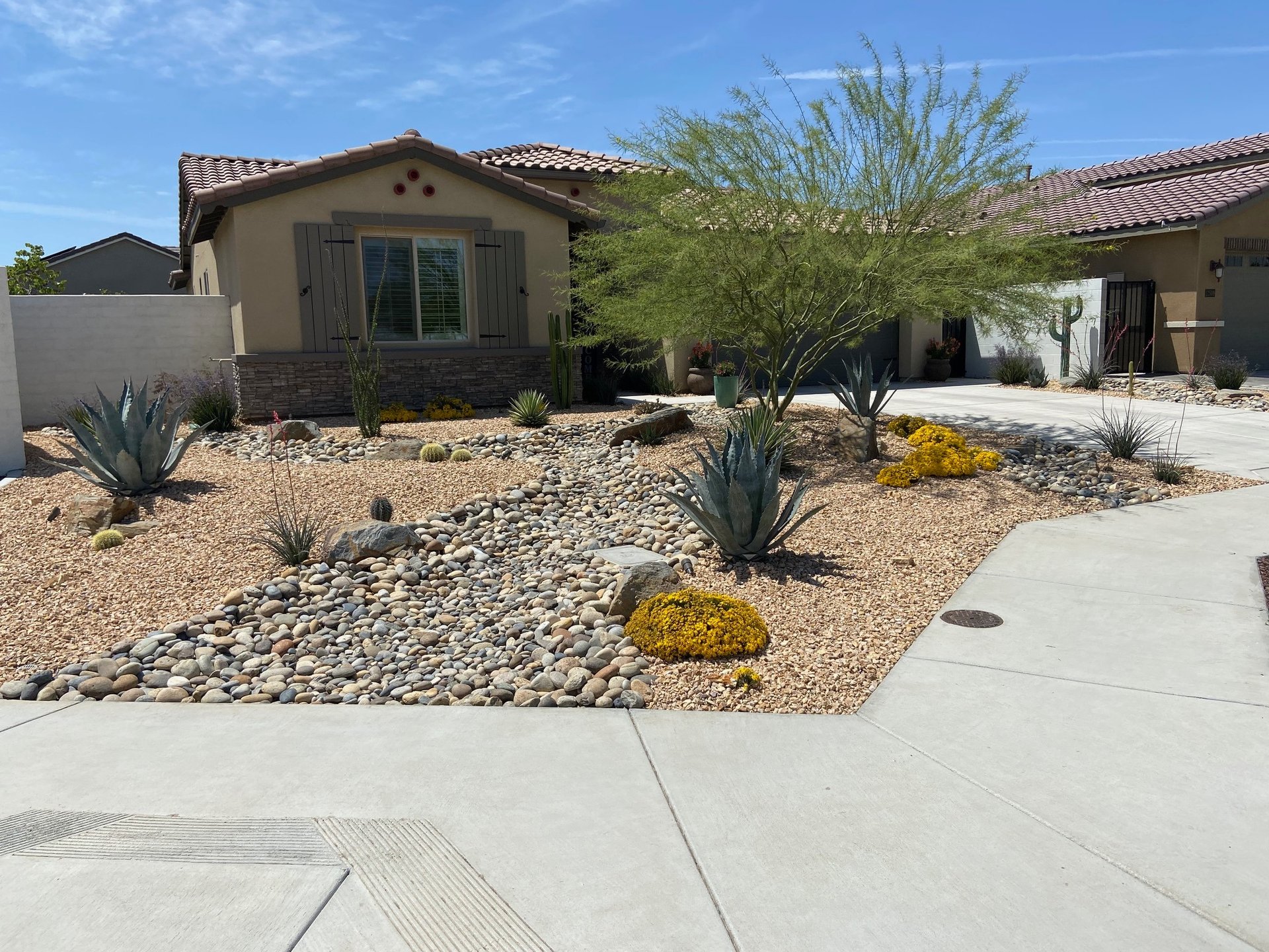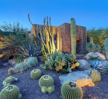 This style of landscape is based around a low maintenance, low water usage and dramatic visual appeal framework. We utilize colorful succulents, agaves, natural boulders, trees, and the occasional cactus to deliver a memorable landscape visual. The entire landscape will be supported by a water efficient drip irrigation system, and we promise you won't find a more striking landscape in your neighborhood.